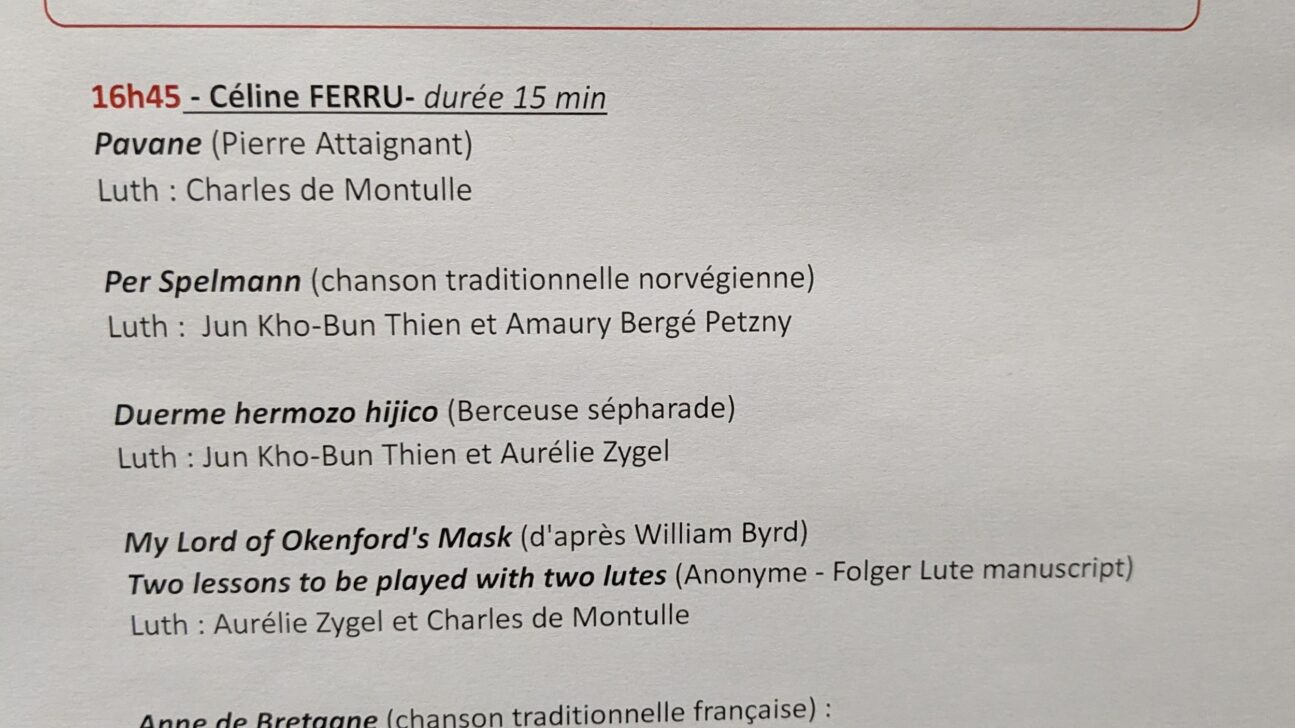 Concert d’ouverture des Journées du luth organisées par la SFL à Paris – Chapelle Saint-Thomas d’Aquin
