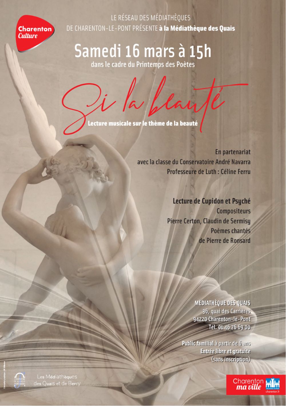 - Samedi 18 janvier Le Conservatoire s’invite à la Médiathèque des Quais pour la Nuit de la lecture • A partir de 18h Conte musical, concert des ensembles de Luth et autres surprises où mots et musique s’entremêlent pour créer des univers imaginaires qui éveillent tous nos sens…