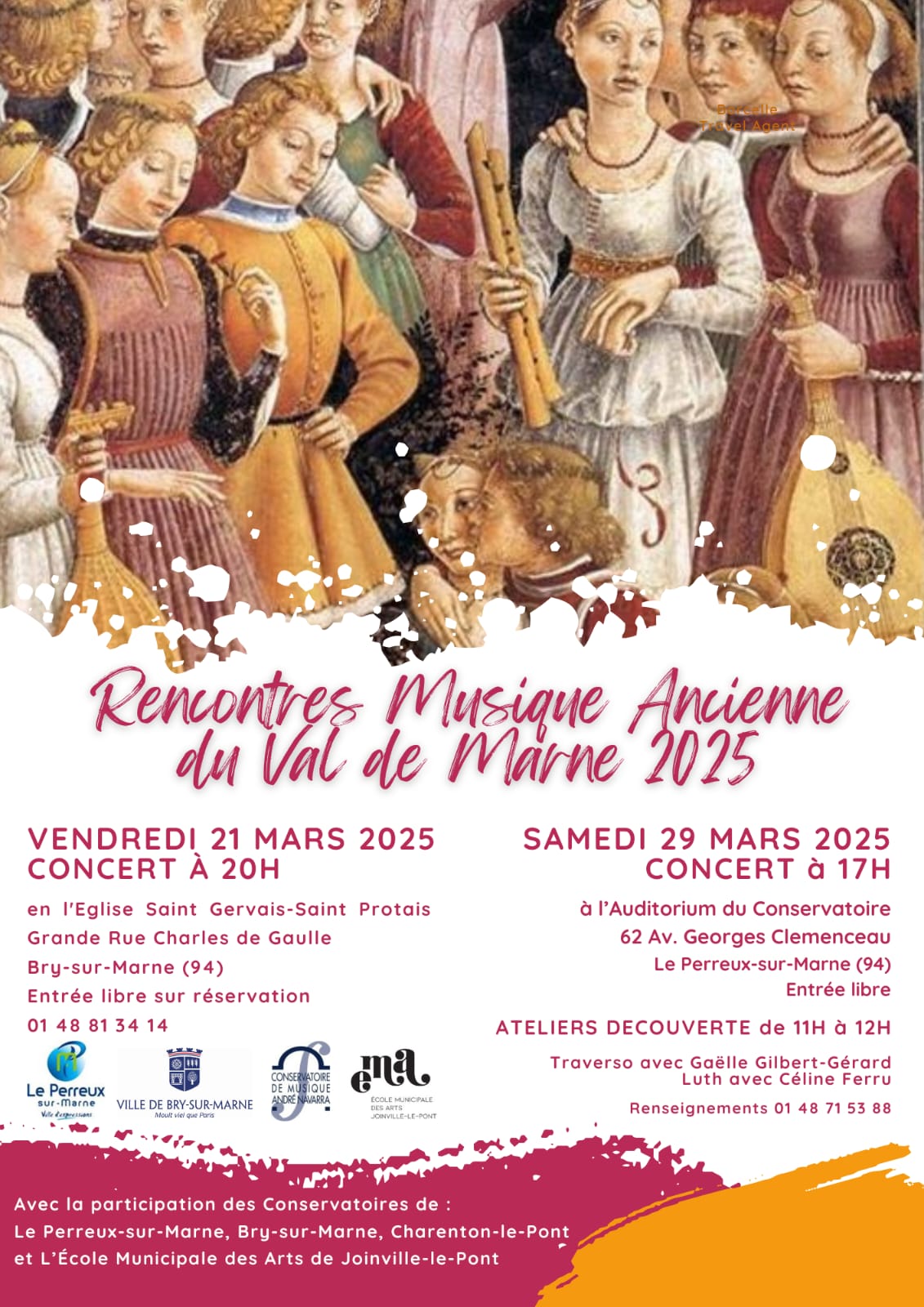 - Vendredi 21 mars à Bry-Sur-Marne et Samedi 29 mars au Perreux-Sur-Marne, participation aux 2èmes Rencontres de Musique ancienne du Val de Marne