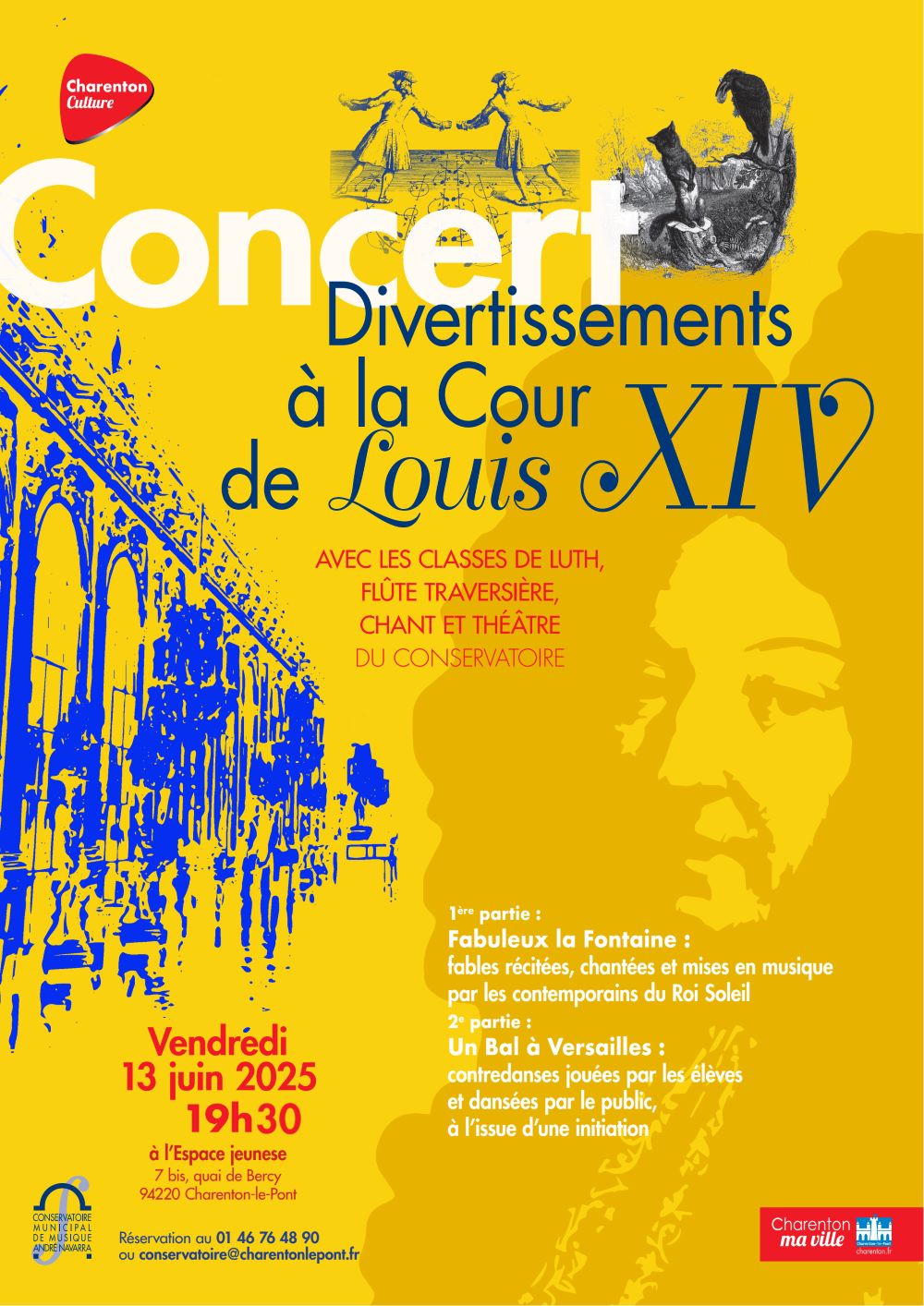 - Vendredi 13 juin – Espace Jeunesse – 19h30 – “Divertissements à la cour de Louis XIV”