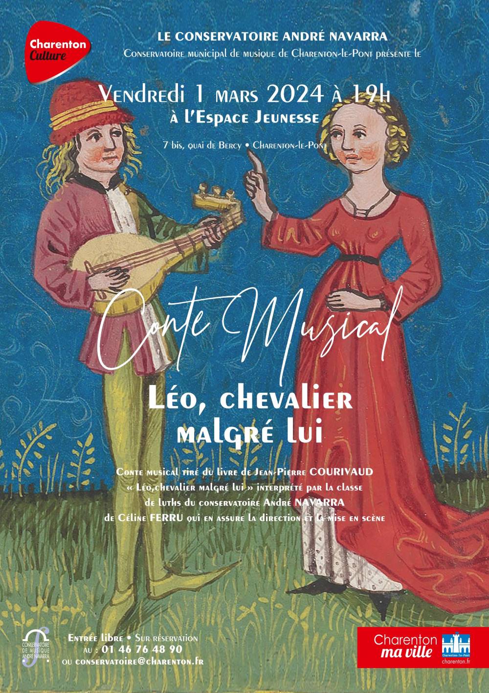 - Vendredi 1er mars – 19h à l’Espace Jeunesse – 7bis quai de Bercy – Léo, chevalier malgré lui, conte musical