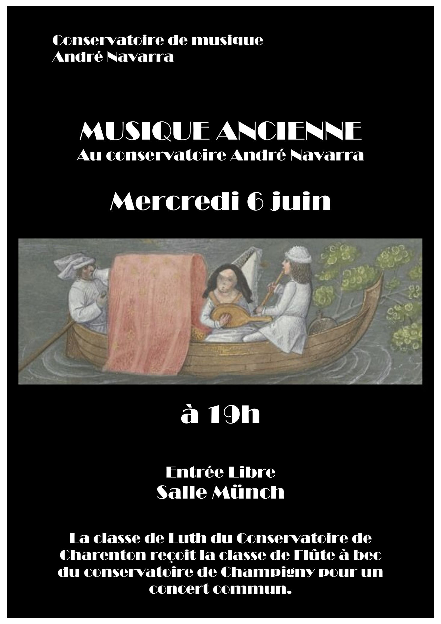 - Mercredi 22 juin 18h30: audition de la classe de luth